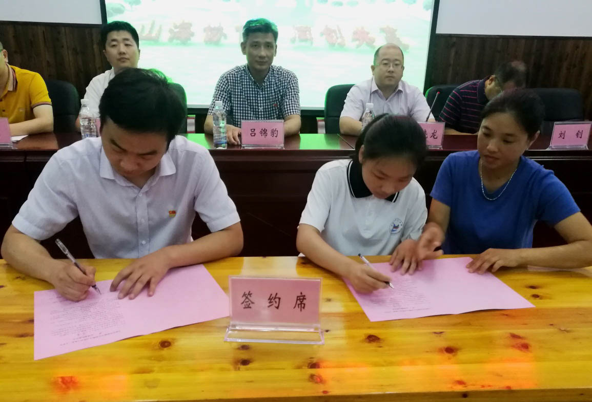 寧波杭州灣中心黨支部書記與受資助學(xué)生、家長(zhǎng)代表舉行簽約儀式