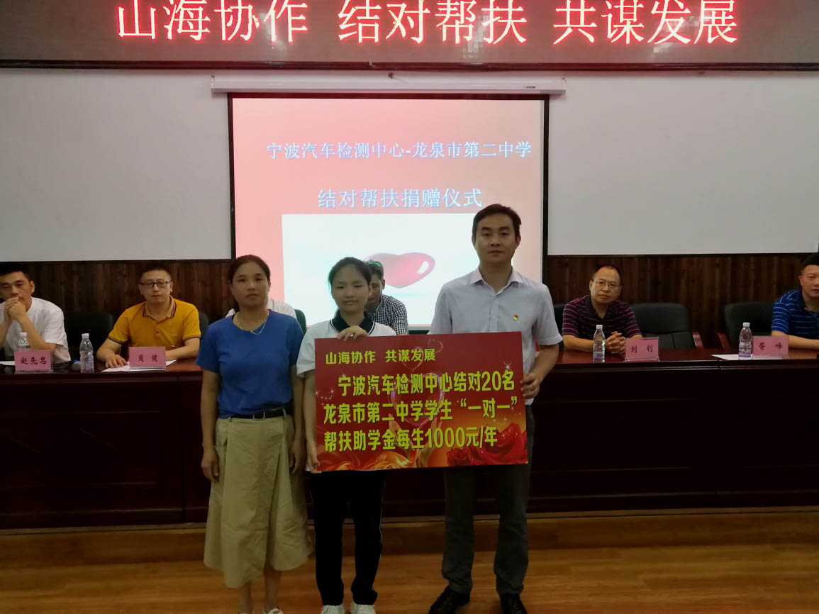 2019年7月5日,寧波汽車檢測(cè)中心黨總支寧波杭州灣中心黨支部黨員代表赴龍泉市第二中學(xué)開展“結(jié)對(duì)助學(xué),一對(duì)一幫扶”活動(dòng),為20名困難學(xué)生送去了學(xué)習(xí)用品、助學(xué)金。