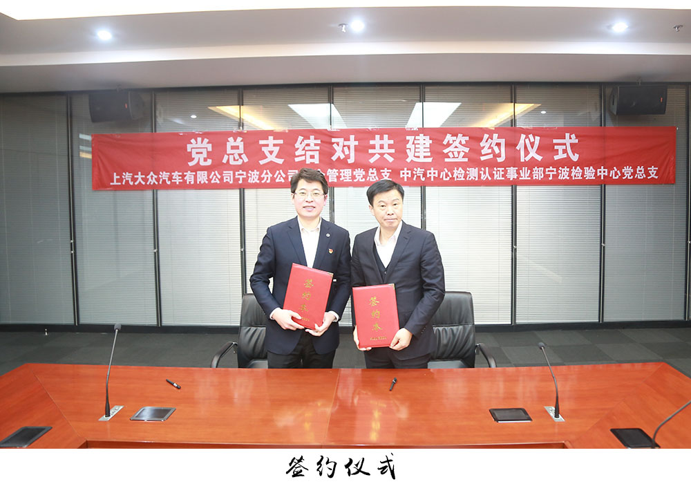 本著“攜手共進、共同發(fā)展”的理念,寧波檢驗中心黨總支與上汽大眾寧波分公司綜合管理黨總支簽訂《黨總支結(jié)對共建協(xié)議書》,就黨建品牌、人才培養(yǎng)、項目合作、資源共享等方面推進雙方長期友好緊密合作,“共筑組織基礎(chǔ)”、“共辦實事好事”、“共促隊伍建設(shè)”、“共謀雙方發(fā)展”。