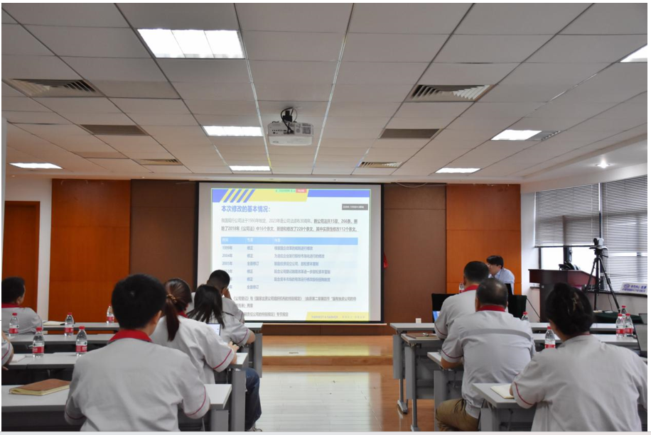 本次培訓特別邀請浙江和義觀達(前灣新區)律師事務所主任竺飛雄律師進行講授。竺律師結合《公司法》新修要點和公司治理需求,從《公司法》修訂歷程及意義、公司章程、股東權利義務責任、公司治理結構優化、強化董監高責任以及國家出資公司特殊規定等重要方面進行全面講解。